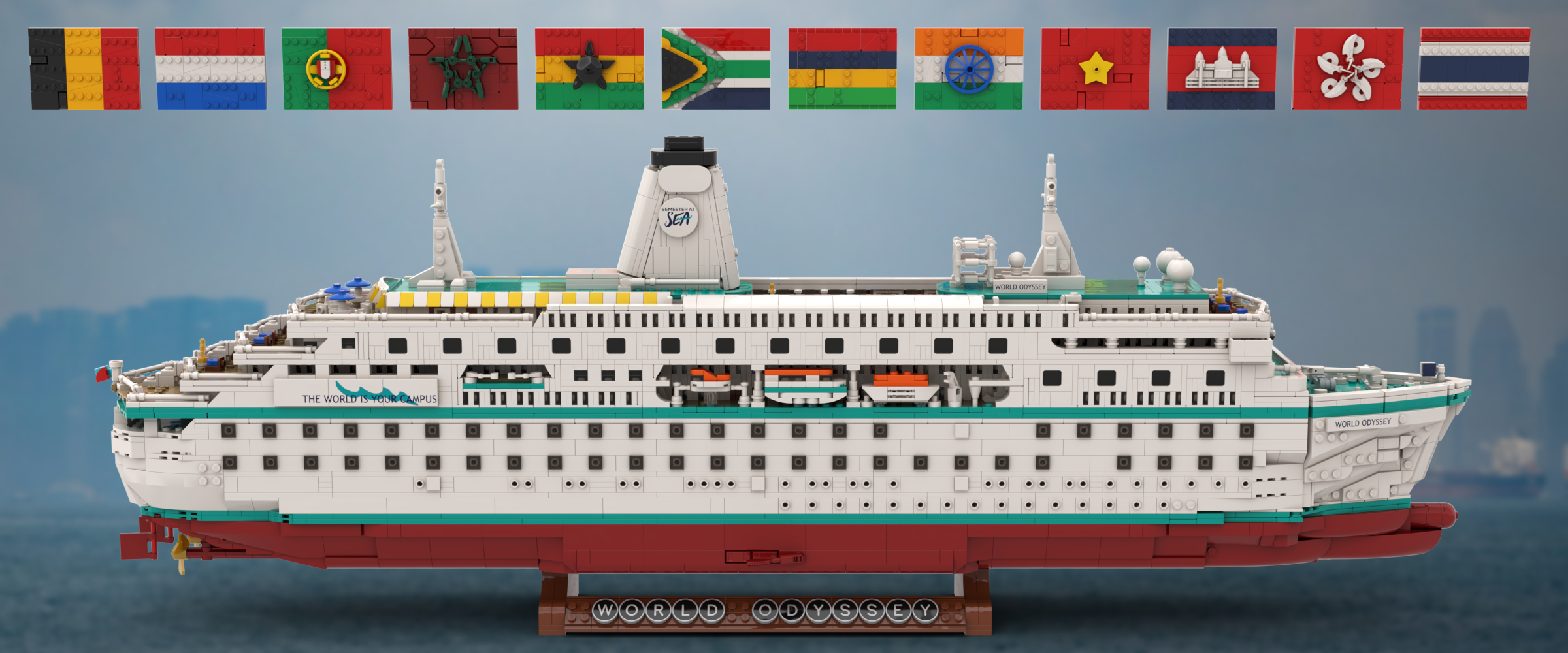 Today, the MV World Odyssey brick model is in California doing what the Semester at Sea does best: sparking conversations. Alex works as a peer advisor at Cal Poly’s International Center, and the office asked him to share the ship with future travelers. It’s now on display in the office, and students frequently stop by just to check it out (and, of course, learn more about Semester at Sea).