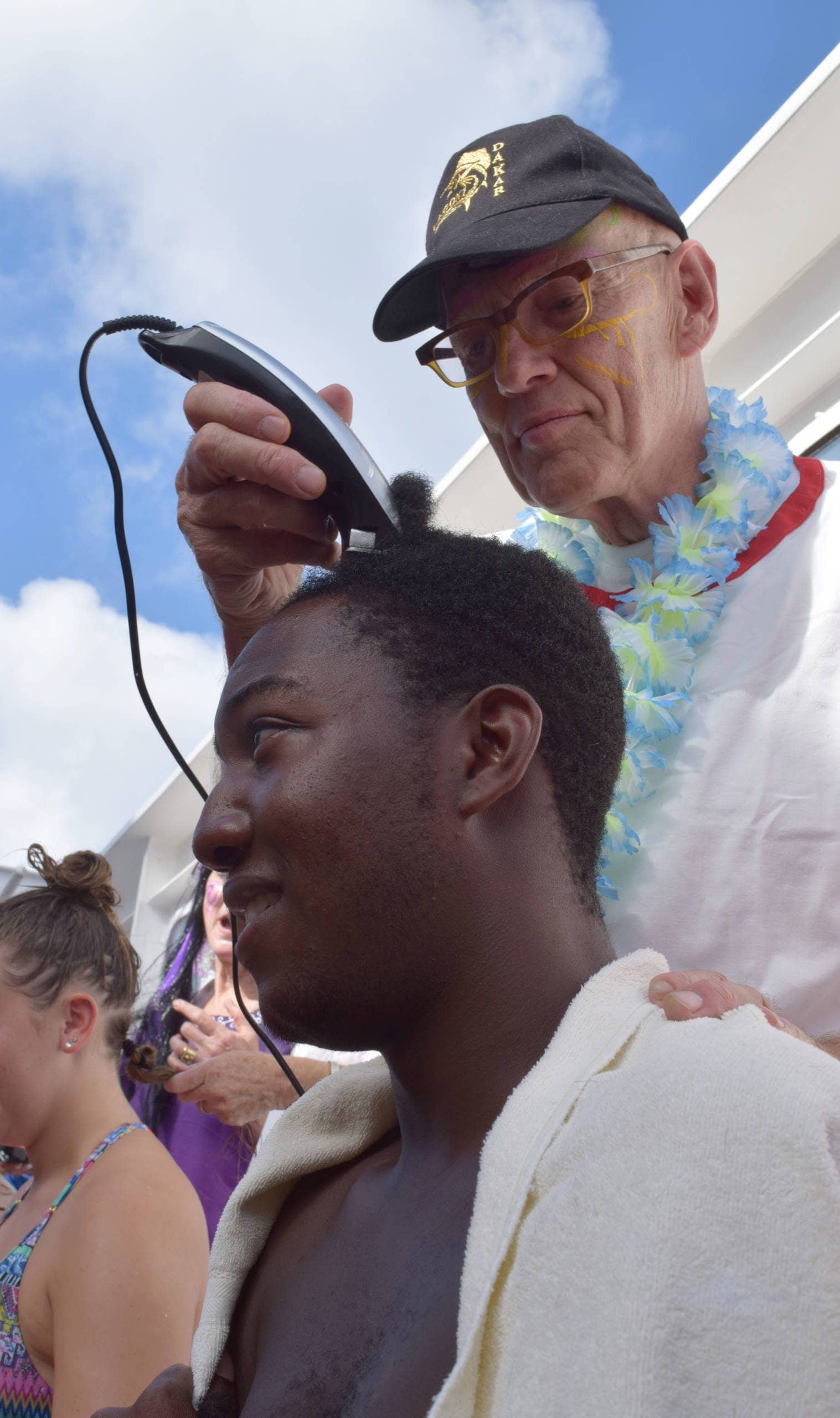 Some voyagers also decided to shave their heads as part of Neptune Day’s festivities. Annamae Bolen is a junior at John Carol University and had several inches of her hair shaved off. She had been planning to shave her head since before the voyage was in Spain.